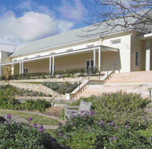 The planting is a mix of native and exotic species. In the southern courtyard there are hedges of Teucrium fruticans and Elaeagnus macrophylla, which complement the strong structural lines of the box hedging along the shaded bed adjoining the library. Within the shaded beds, plants were chosen to provide seasonal variety. For winter flowering there is Helleborus and Sarcococca ruscifolia; for a spring flourish, Anemone japonica and variegated Iris.