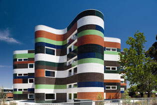 Fitzroy High School certainly doesn’t blend in to the background – coloured bricks have been used to reflect the surrounding Italianate architecture and the curved, smooth exterior of the main building resembles a wave of bricks flowing out from the original community structure.