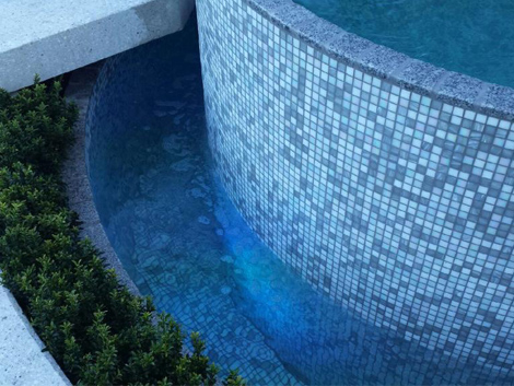 Glass mosaic tiles are becoming increasingly popular for swimming pools, spas and water features. Glass mosaics offer a much wider colour choice than traditional ceramic mosaics and provide visual effects such as crystal, gold and pearl that simply aren’t available when using ceramic tiles. Their small size complements the modern finishes used in today’s homes.