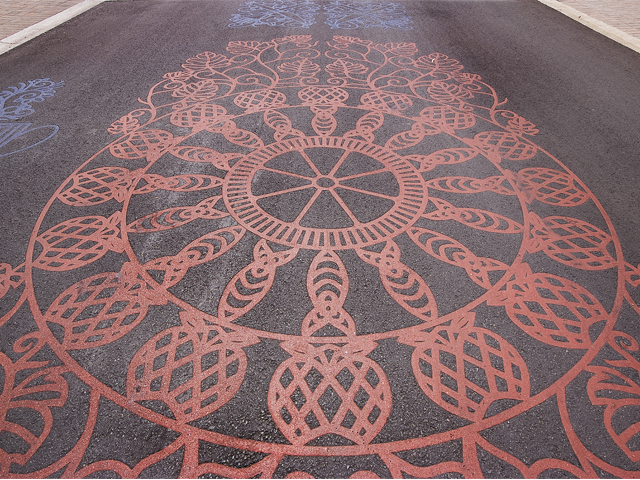 A decorative surfacing product, DuraTherm™ is a thermoplastic material installed flush into imprinted asphalt that is specifically designed for high-traffic areas such as crosswalks and intersections. It is quick to install and will maintain its vibrancy for many years, making the Welcome Mat project a viable long term community initiative for the City of Unley.