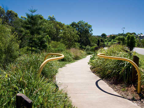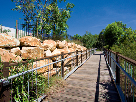 Astonbrook Estate, located in Carindale, Queensland, is a boutique estate developed by Villa World comprised of 47 large land lots located just 15 minutes from the Brisbane CBD. Billed as exclusive living, the estate is a beautifully landscaped enclave designed around the riparian corridor, which provides recreation and leisure space for residents and visitors. Sandstone lined pathways encircled by verdant greenery provide passage to a private bridge and viewing platform that offers stunning views over the repaired and now thriving riparian corridor.