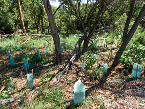 To reinstate the lushness of the area 40,000 plants, consisting of endemic species of trees, grasses and shrubs in varying sizes from 15cm to 3m-tall, were planted, returning the creek corridor to its former glory and providing habitats for the native fauna. Due to damage caused by wallabies in the newly planted areas, temporary fences were installed to protect fresh growth, and a temporary irrigation system, which utilised water from the existing onsite dam, was installed to guarantee plant survival.