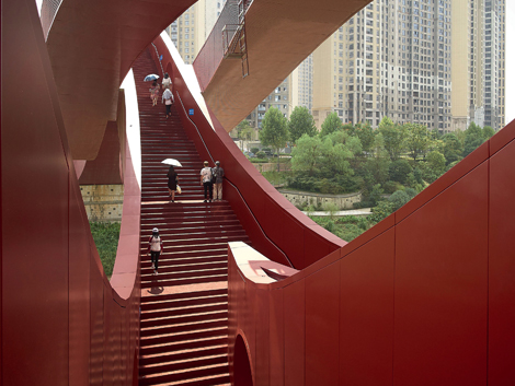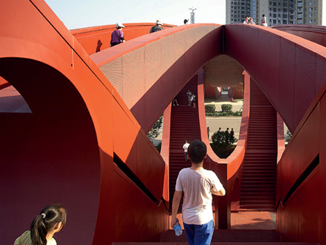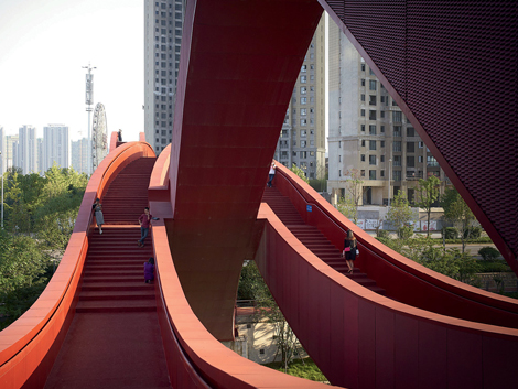 “The shape of the Lucky Knot was inspired by the principle of the Mobius ring, as well as by the Chinese knotting art. In the ancient decorative Chinese folk art, the knot symbolises luck and prosperity,” says John van de Water, partner at NEXT Architects Beijing. The bridge owes its imaginative appeal to the combining of tradition and modernity.
