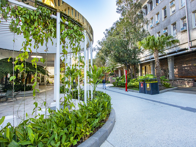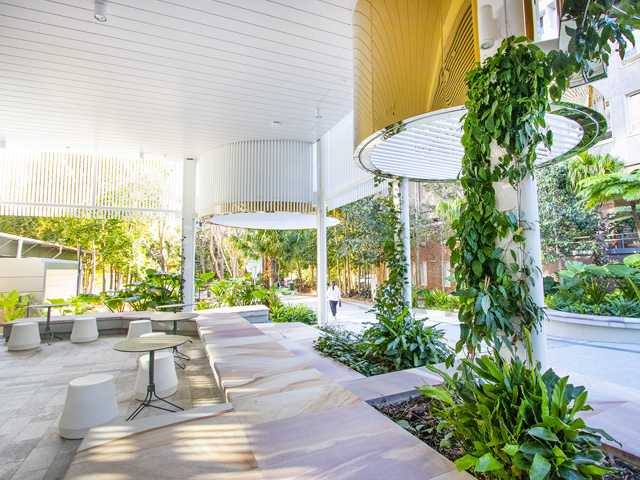 As the assigned landscape contractors to the site, Penfold Projects was responsible for installation of soft landscaping applications. The scope of works included the installation of a varied subtropical planting palette and edging to planted areas. Trellises were also installed by the team to create a sheltered seating area for students to gather and relax between lectures. Mature ex-ground trees were installed as part of the planting plan, offering shade to passersby and adding a level of maturity to the overall landscape design.