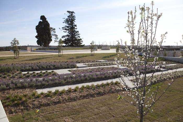 Construction included excavation, grading, sub-soil drainage, soil amelioration, irrigation, planting and turfing, paving, stairs, handrails, balustrades, lighting and the installation of playground equipment. Plant selection and placement pays tribute to the area’s historic past by using ornamental fruit trees in the ‘orchard’ and lavender in the interpretative kitchen garden.