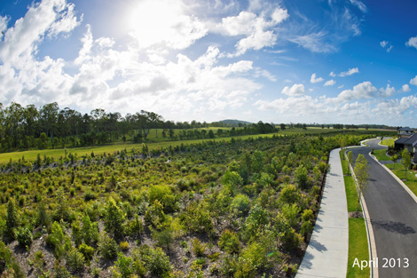 Situated on Swan Road in Pimpama Queensland, the Gainsborough Greens project involved the revegetation of the overland water course of a new housing estate, incorporating artificial wetlands and stormwater swale. The project was completed in June 2012, with Evolve Environmental Solutions responsible for the mulching, planting and maintenance of the drainage swale and wetlands associated with Gainsborough Greens Precinct 6.1.