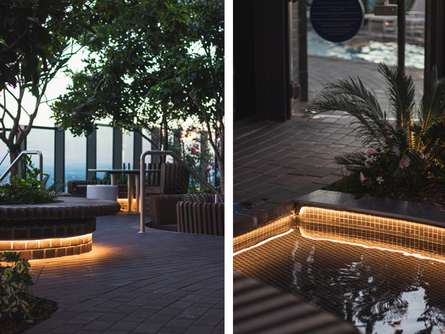 The front streetscape gives a hint of the oasis to be found on the rooftop, with corresponding greenery framing the front of the building, reaching up to a double-height vertical green wall that runs along the facade of the tower. Starting at the ground level and progressing 31 storeys up to the rooftop garden, this landscape project was a mammoth undertaking by CBD Landscape Construction, but the end result sure speaks volumes.