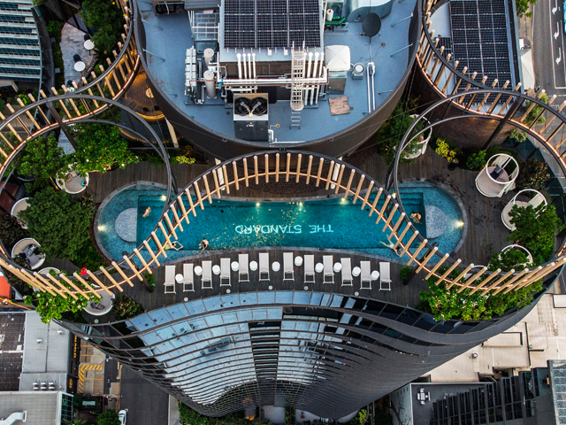 With Babylonia-style abundance, The Standard’s landscape flows from commercial-quality garden beds and planters, complete with irrigation, from CBD Landscape Construction. A mix of ground level shrubs and grasses combined with soaring mature trees provide privacy and shelter for users as well as visual variety.