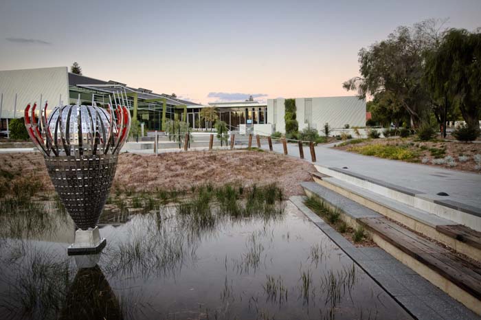 The Grove Library is a new precinct that contains a state-of-the-art library facility and community centre for the Shire of Peppermint Grove, Town of Mosman Park & Town of Cottesloe, as well as the administrative offices for the Shire of Peppermint Grove. The Newforms Design Team designed the landscape for the precinct.