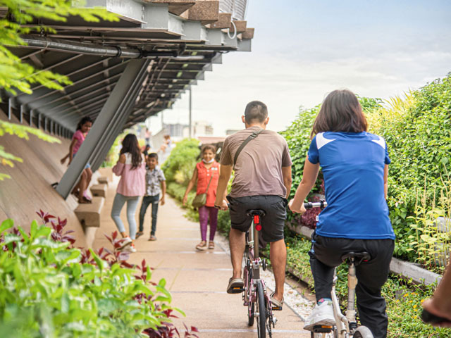 Merging two existing community parks on either side of the river, CPSP becomes the literal and figurative bridge between the two spaces. Measuring just 8.5 metres in width, the park is flanked by heavy traffic. However, by elevating the park above these roadways, traffic noise and pollution are reduced, ensuring a safe and beautiful experience for pedestrians as they cross the river.