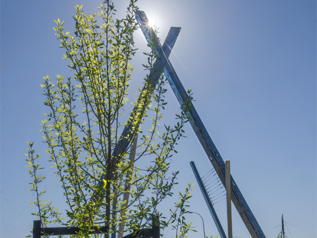 The entire perimeter of the park is bordered by advanced ornamental trees, the standout being a 50m-long archway of Parrotia persica. Indian Summer Crepe Myrtle (Lagerstroemia indica x faurie) will be a knock-out in summer with striking blooms pedestrians will love to meander through. And one of Fleming’s new tree species is also on show, Nyssa sylvatica ‘Forum’, which will shine in Autumn with fire-bright leaf-turners.