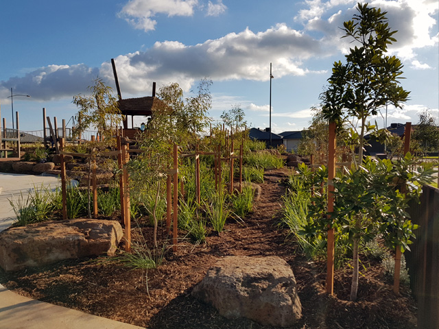 Numbering 4700 trees and 110,000 plants provided so far, the streetscapes, parks, roads and major play and recreation spaces of Woodlea are blossoming under the knowledgeable hands of Speciality Trees, including significant greenspace elements Frontier Park and the Aintree Walk of Honour.