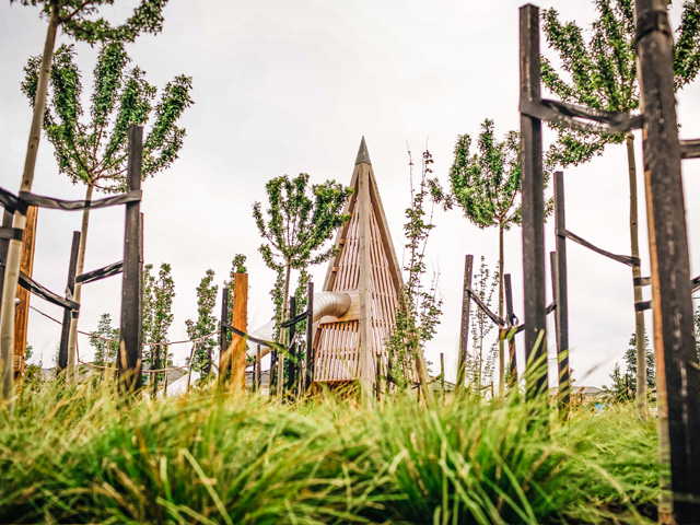Wanting to create a park that heralded the future while still retaining a link to the past, Fleming’s employed skilled craftspeople to produce genuine quality through hand-worked timber features — which took days of painstaking carpentry — as opposed to installing standard plastic play equipment. Going the extra mile has produced a space that feeds into the company’s mission to provide quality communal spaces for real people.