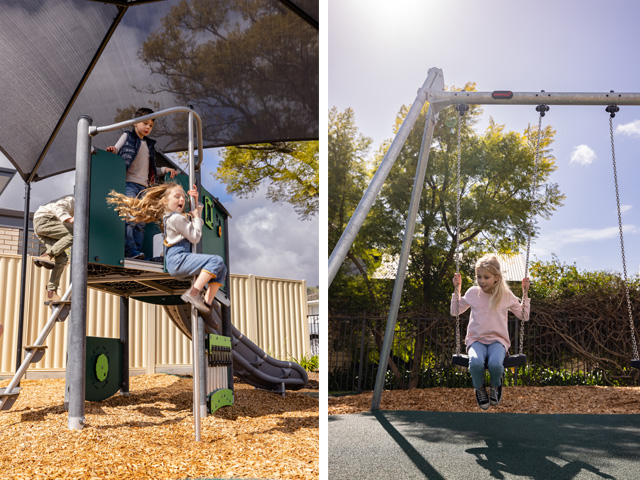 To achieve these high standards, play equipment specialist KOMPAN Australia was brought on board. Responsible for designing and manufacturing a range of equipment that would not only meet Council’s requirements for varied play activities and suitability for children of all ages and abilities, KOMPAN also engineered a range of fun play structures that achieves Council’s requirements for sustainability — meeting the standards set forth in the South Australia Green Procurement guidelines.