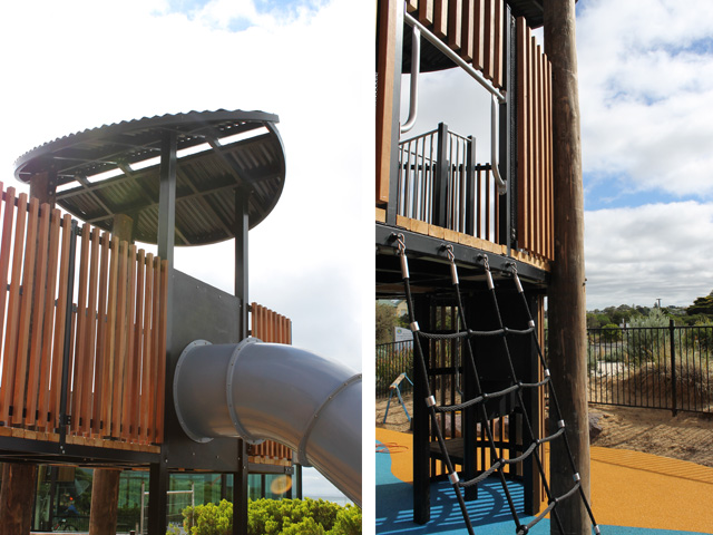 With ocean views from the top of the tower, this timber playspace sits harmoniously within its coastal location.