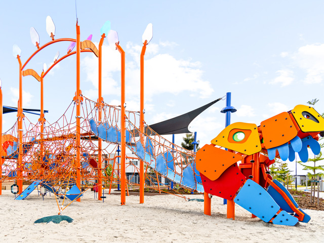 Working in collaboration with Stockland, Place Design Group and Eureka Landscapes, Urban Play contributed to the development of a playspace that would offer this community something no one else had ever experienced. Through this collaboration, the Aurasaurus was born.