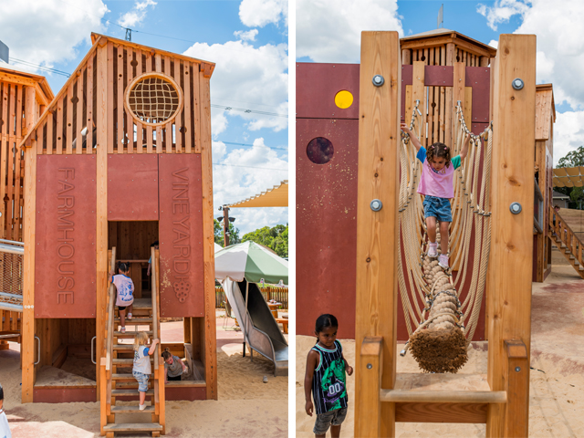 Working to a brief that called for the playspace to “transcend mere functionality and embed a deeper narrative of connection,” the design team pulled on Vineyard’s rich agrarian and viticultural heritage for inspiration. Weaving these elements into the design, the final result reflects a farmhouse vibe at its heart.