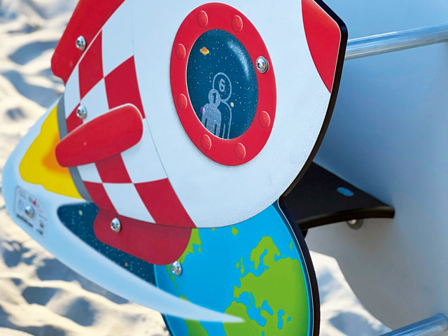 Thoughtfully designed to provide quality play value for children of ages, this diverse playspace has something for everyone. For the young adventurers, a whimsical rocket ship springer and a QualiCite fire truck unit stand ready to ignite imaginative play challenges. Constructed from HPL panels, these play structures are a cuttingedge solution, offering exceptional resistance to environmental stresses. The panels are not only 100 percent bio sourced and recyclable, they are also designed to provide highly effective protection against the elements.