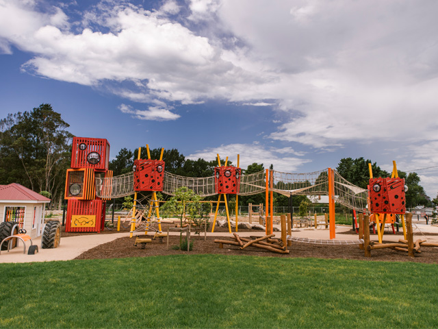 Located in Berry on the New South Wales south coast, the park reflects a masterplan developed by Shoalhaven City Council Community Engagement that required a multigenerational public space with a multizone play area for juniors and youths.