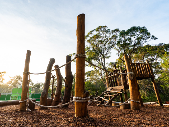 Encompassed within the park is an all-inclusive playground that meets NSW Government’s Everyone Can Play guidelines, a large turf area, amphitheatre and a multi-use games arena. Picnic shelters, barbecues, drinking fountains and accessible picnic settings can also be found. But one of its biggest drawcards is its nature-inspired parkour course.
