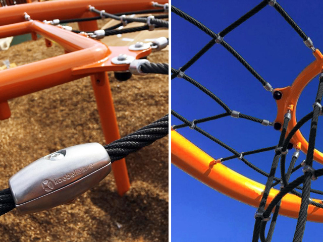 Anchored with stainless steel ‘chain boss’ links — designed by Kaebel and TIG-welded inhouse to provide strong, reliable connections — the Spaghetti Swish structure in Syd Jones Reserve offers longevity and durability in the playscape, making it a valuable asset for Council. Finished off with purposed-designed hardware and subtle details that reflect quality engineering and commitment to safety, this is one playspace that will stand the test of time.