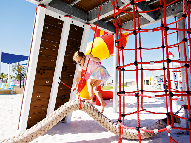 A beach themed playspace combines fun and education to promote wellbeing, enjoyment and exploration.