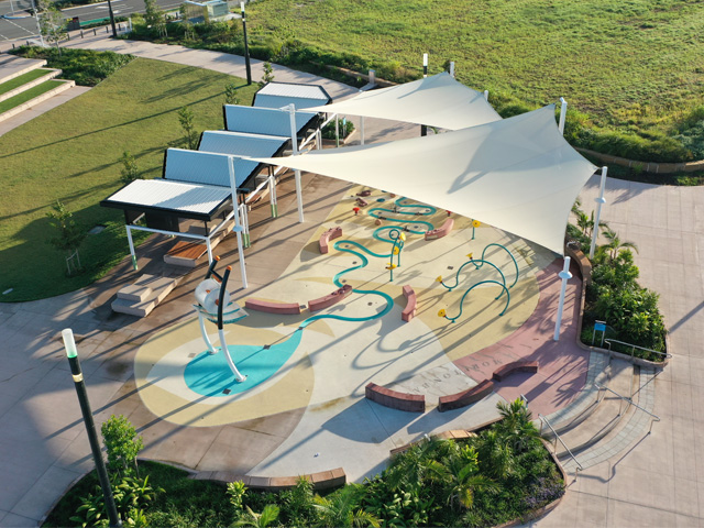 Bringing their expertise to the table to ensure the best possible outcome, Playscape Creations was engaged by landscape architecture firm O2LA for specialist design advice in creating an interactive water feature, considering structures, developing hydraulics and water-quality management systems for the aquatic zone. Playscape Creations was engaged as the specialist aquatic construction contractor by JMac Constructions for the aquatics phase of the project. Additionally, it received the contract for the construction of the adventure play zone through Council.