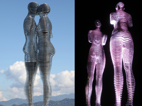 Representing love separated by war, a massive kinetic sculpture in the city of Batumi is a public art landmark that draws the eye and tugs the hearts strings.