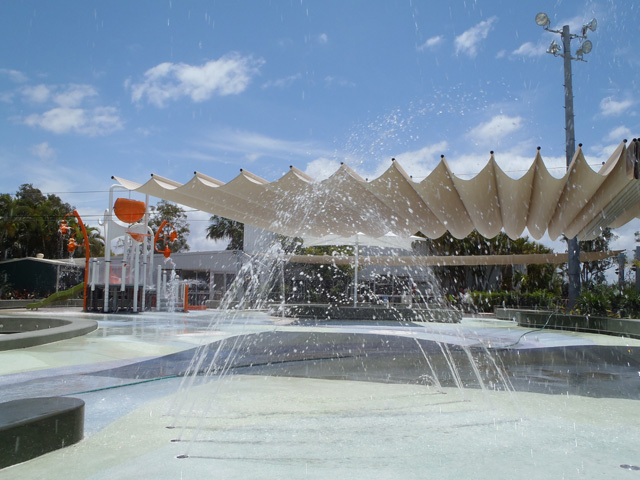 Working in collaboration with Brisbane-based architectural firm Argo and head contractor Beau Corp Aquatics, all-weather protection specialist Shadeform was engaged to design, manufacture and install five large-span Shaderunner® retractable sail systems for the Splash Zone waterplay area.