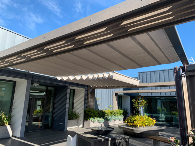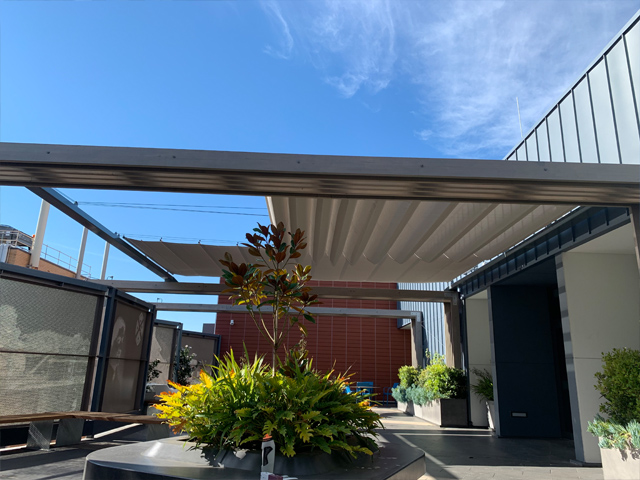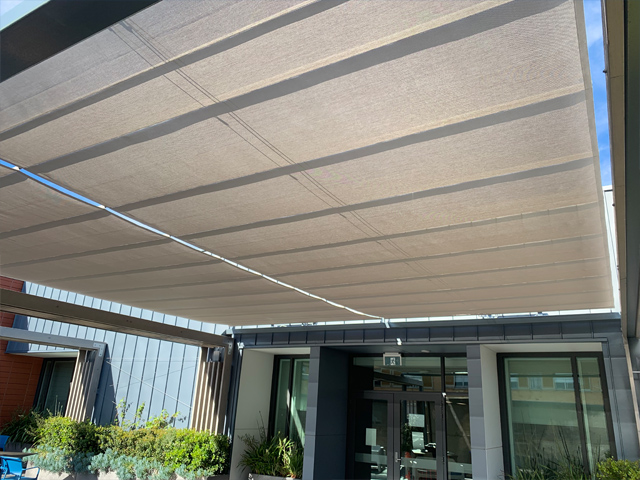 By installing the Shaderunner® retractable sail system, the hospital’s invaluable outdoor space now has the benefit of controllable shade on demand, providing thermal comfort to patrons and visitors as required year round.