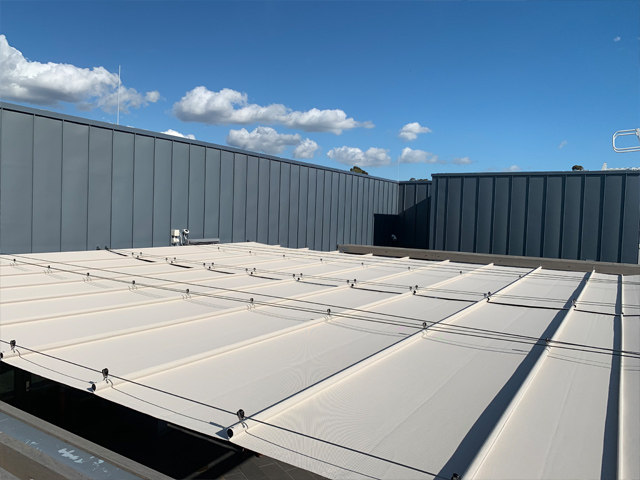 Using high-quality components, most Shaderunner® systems require only two running wires along which the fabric extends and retracts. Being on the third-floor terrace, the twin Shaderunner® system at St Andrew’s Hospital was specified with an additional third running wire to provide greater stability for the location. In addition, a weighted tube was added to the front panel of each system that serves to lessen wind action on the retracted Shaderunner® under extreme wind events, reducing the occurrence of fabric wear in windier areas.