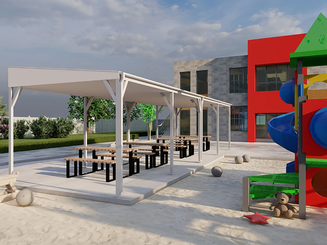 • PVC membrane structure with powdercoated steel frame