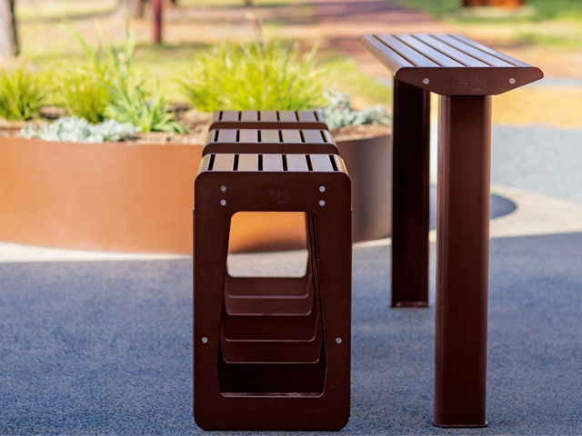 Undertaken by infrastructure specialists GX Outdoors, Darkan Skate Park was fitted with a complete suite of products ranging from table and bar settings to barbecues, drinking fountains and bin enclosures that integrated seamlessly into the natural environment of the rural region.