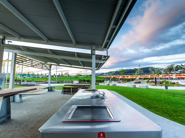 Lightweight, corrosion-resistant with good thermal conductivity, the stainless-steel topped Contour barbecue is housed in a powdercoated cabinet for long-term durability. DDA-certified and easy to clean, the Contour is backed by a GX Outdoors 20-year warranty. To keep these facilities dry and people in the area, GX Outdoors Akora shelters were also installed across the park.