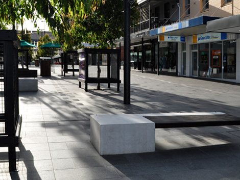HUB was engaged by GAO to provide preliminary design advice for the furniture and light poles. Through an open tender process, HUB won the contract to design and supply the custom furniture, including 2m cantilevered concrete and HWD seats, benches and picnic tables, custom structural Class B load tree grates and grilles with infill paving, and multi-function poles of varying heights used to suspend the cantenary feature lights.