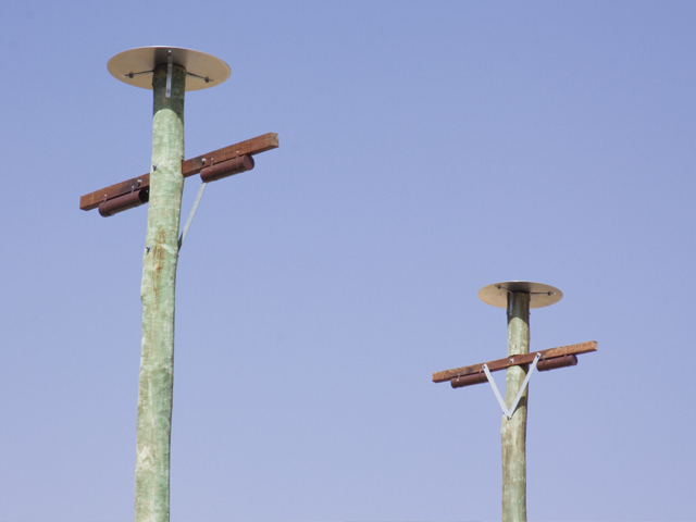 Located in the new residential estate of Springfield Lakes in Queensland, a distinctive series of built structures provide platforms and climbable formations that allow animals to safely traverse the newly constructed area without interacting with human inhabitants. Designed and installed by Evolve Environmental Services, these infrastructure poles form landing points for possums, gliders and the like to navigate their normal foraging routes, which have been interrupted by construction. Placed close enough together to encourage movement, the poles also make it possible for animals to remain connected with the wider species groups in the area.