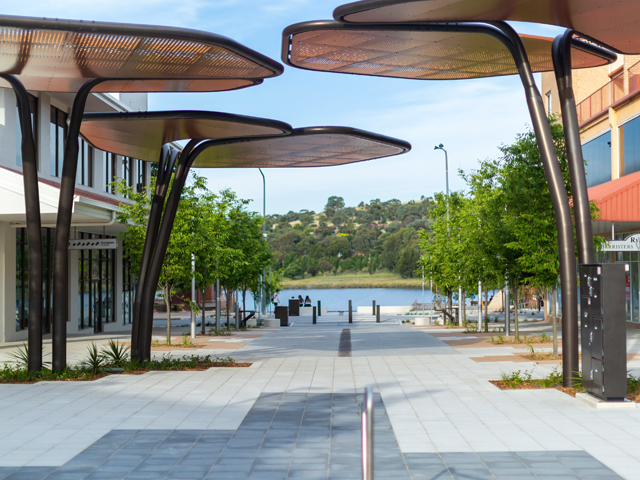 Bringing renewed life to the town centre of Tuggeranong in the ACT is The Laneway. A central open space hub that spears off Anektell Street and leads down to the Lake Tuggeranong foreshore, this reactivated area once again offers an accessible, safe and inviting usable space to visitors while re-establishing a visual connection to the lake.