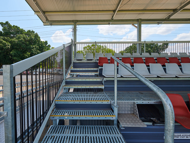 Briefed by Lismore City Council, the new grandstand was required to be covered, with comfort, functionality and durability key elements of the design. It was required to be accessible for all users and functional for grounds staff. In addition, it needed to be able to withstand a 1-in-500-year flood event — which was incorporated into the structure without sacrificing visual integrity — and feature maintenance-free finishes.