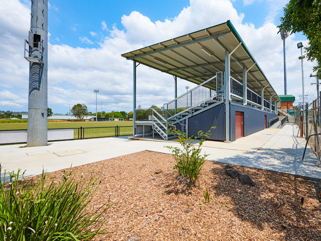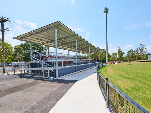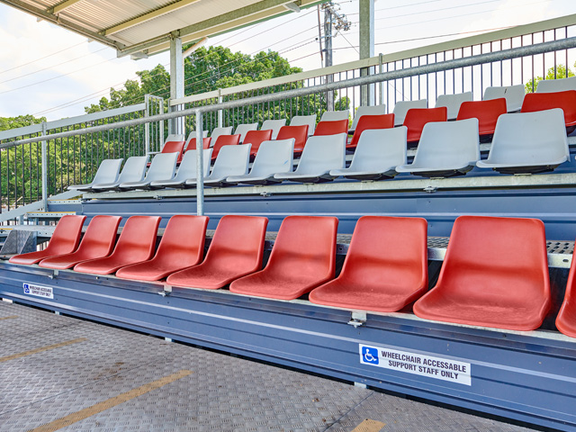 The resulting design from SPR sports a raised deck platform with comfortable bucket-style seating for over 200 sports fans, including a wheelchair parking zone. Wide walkways between seating rows to aide ease of movement, a wheelchair-accessible entry ramp, and a lockable storage area at the rear of the structure for secure and easy access of maintenance equipment. The grandstand’s skillion roof offers more than adequate shade coverage and the sloped angle ensures full visibility for enthralled spectators.