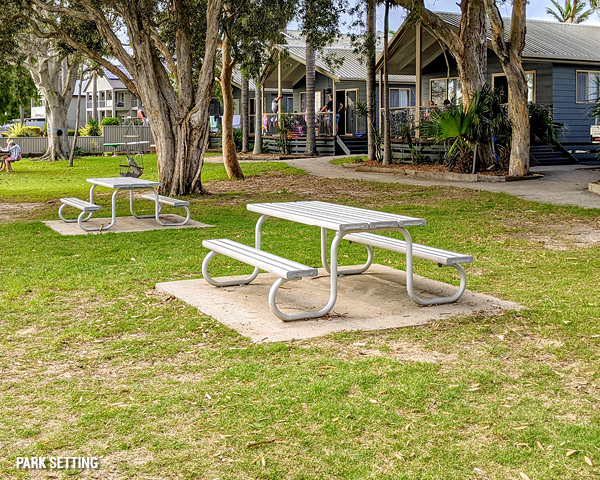 Ten park settings were installed at key points throughout the Blue Dolphin Resort. Spacious tabletops offer ample room for even the most generous picnic spread and, with each unit capable of seating eight people, many groups are able to enjoy the great outdoors at the same time.