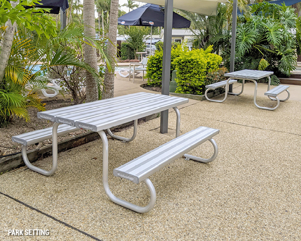 The quality, practicality, design and low maintenance of Felton’s seating made the outdoor furniture a big hit with guests and staff alike. Such success has led the Blue Dolphin Resort to become regular customers and advocates of Felton’s outdoor furniture range, with the resort now boasting 25 park settings and numerous bench seats.