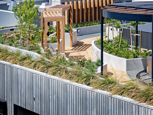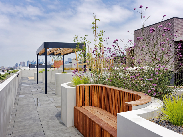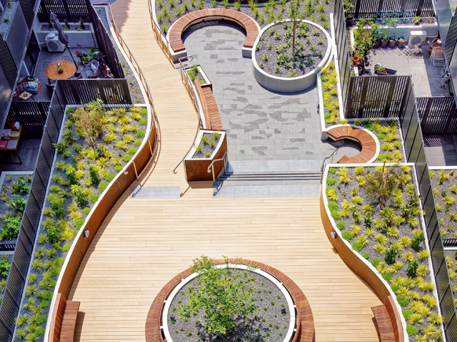 A new residential development is rounded out with landscaped living spaces that put the green into the urban jungle.