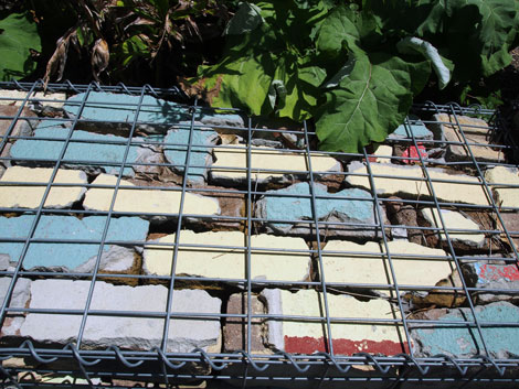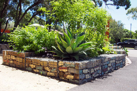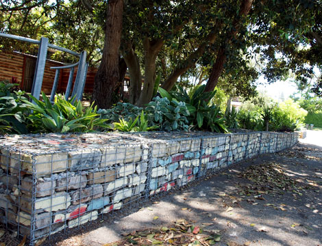 The cages were filled with rubble from a demolished building to line the garden beds. The idea was to utilise as much material as possible to reduce taking material to a landfill. The gabion walls were built using Permathene's 100mm x 50mm in 4mm AL-TEN™ (Al 10 Zn 90), 4mm wire. Connections were with spirals.