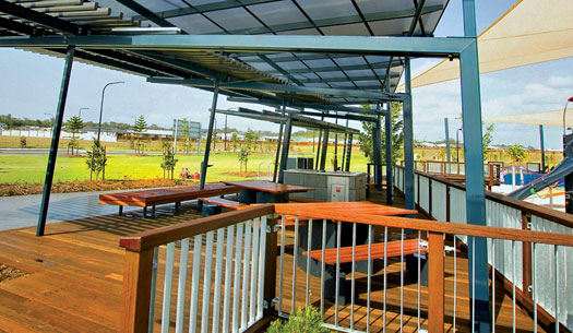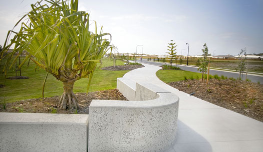 This large park showcases nearly every element in landscaping from softscapes to timber decks, off form concrete, park shelters, exposed concrete finish, honed concrete paths and seating walls.