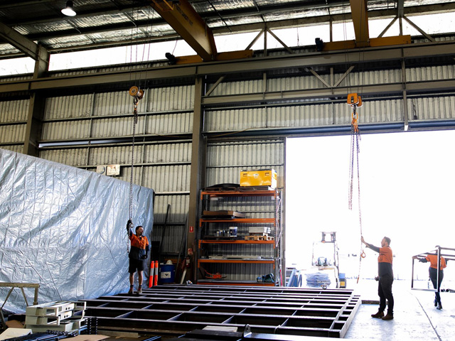 Using the Dual Crane Lift at our Kunda Park Warehouse to turn this 8.5 tonne bulkhead over. Painted by our Heka Coatings team in a Dulux Duremax GFX – Satin Black Glass Flake coating.