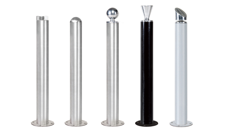 Wide bollards in galvanised or stainless steel body come with a choice of two collars and two cast aluminium heads.