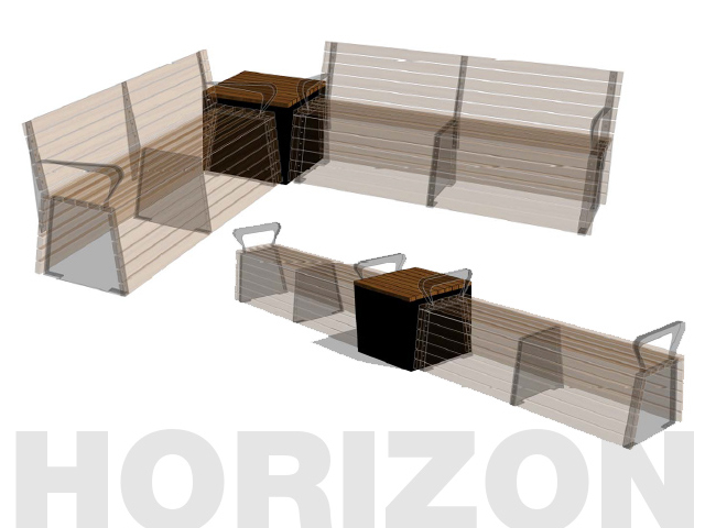 A striking rest-stop for pedestrians featuring hardwood seating and ‘skirts’ parallel to the ground, the Horizon range is much more than a single piece of furniture, but a landscape architect’s dream.