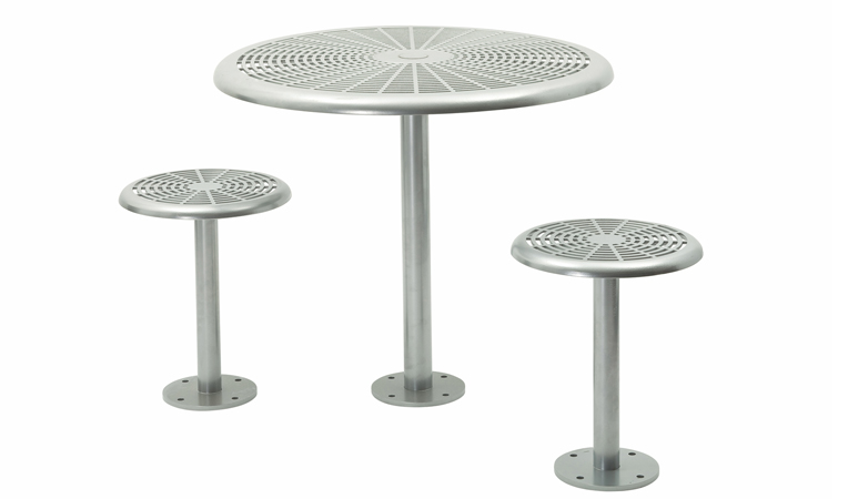 These durable cast aluminium tables and matching stools are perfect for outdoor dining. Mix-and-match top and feet options available.