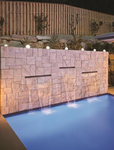 Adding spot lighting around the pool will really bring the area to life. Retaining walls provide a great opportunity to incorporate lighting into the pool area and can add height and depth to poolside areas. A vertical wall will provide additional perspective and help enhance the effects of lighting.
