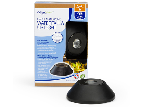 The Aquascape 1-Watt LED Waterfall light provides beautiful lighting options ideal for use in ponds, waterfalls, gardens or the up-lighting of plants. This energy-efficient, compact light can be placed anywhere an accent light is needed, and it can be used either in or out of the water. The 3000 Kelvin temperature will provide natural-looking white light that will completely transform the way your water feature looks at night. Light output is equivalent to a 10-watt halogen light. The Aquascape 1-watt LED Waterfall lights are constructed of die-cast metal designed for years of use, and their quick-connect fittings make for simple installation. Includes a removable mounting base can be wedged beneath large rocks or covered by gravel, ensuring the fixture maintains proper position beneath cascades. Aquascape LED Waterfall lights are completely sealed from water and come with a five-year warranty. Aquascape is passionate about the products we produce, providing unique products, designs, and features that stand above the competition.